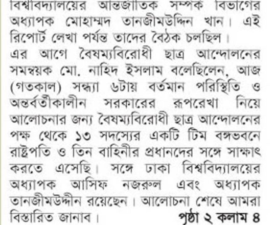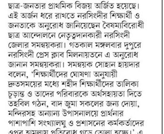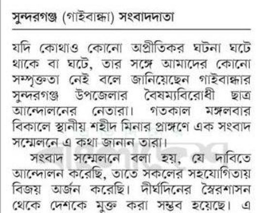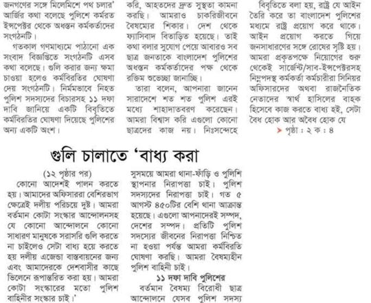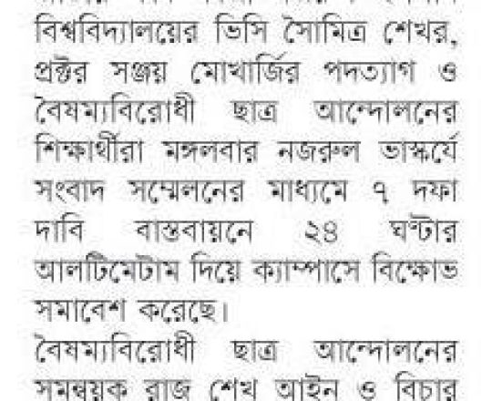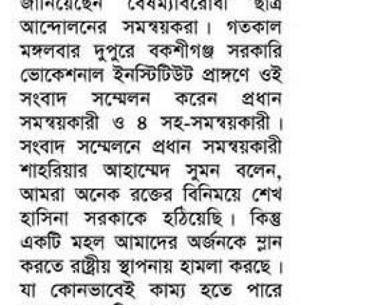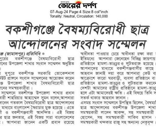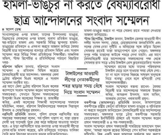 ভোরের ডাক, ৭ আগস্ট ২০২৪, বৈষম্যবিরোধী ছাত্র আন্দোলনের সংবাদ সম্মেলন