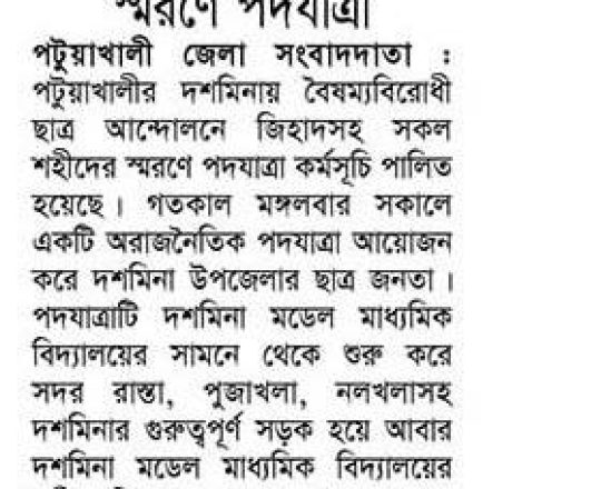 ভোরের ডাক, ৭ আগস্ট ২০২৪, দশমিনায় বৈষম্যবিরোধী ছাত্র আন্দোলনে শহীদের স্মরণে পদযাত্রা