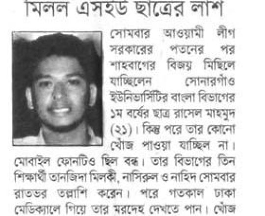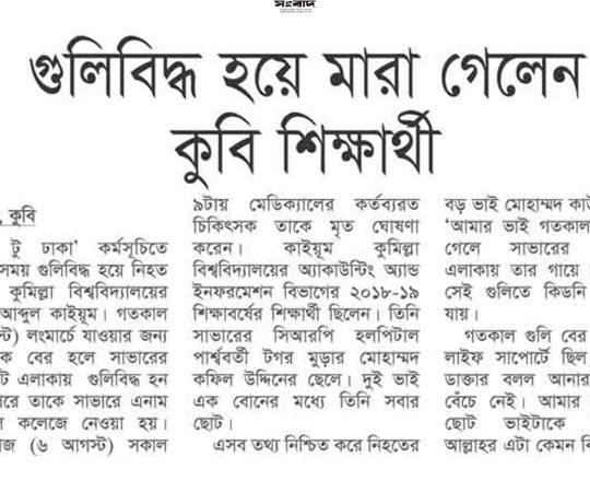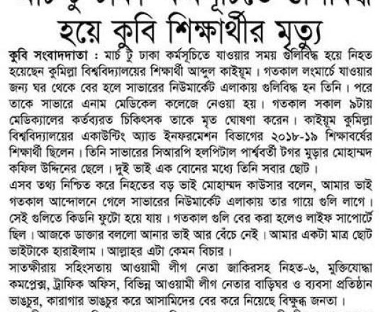 ভোরের ডাক, ৭ আগস্ট ২০২৪, 'মার্চ টু ঢাকা' কর্মসূচিতে গুলিবিদ্ধ হয়ে কুবি শিক্ষার্থীর মৃত্যু
