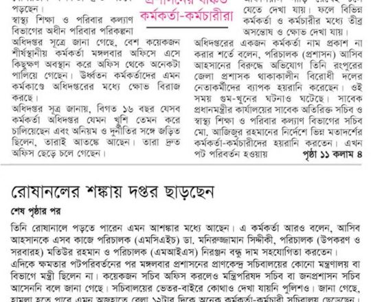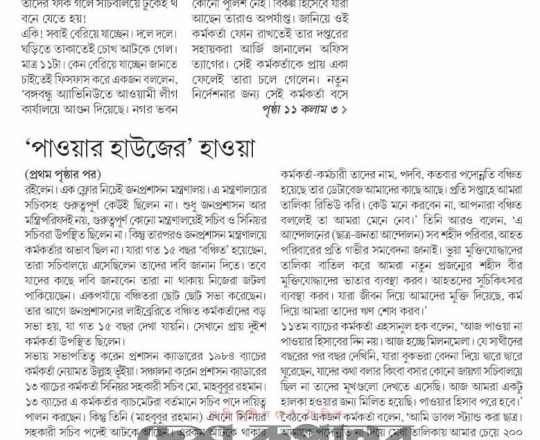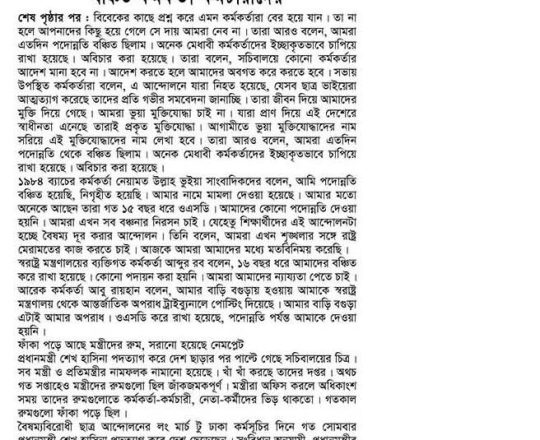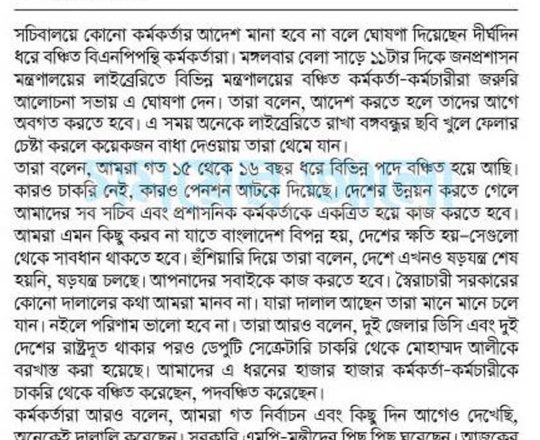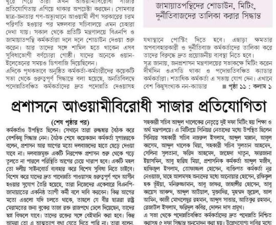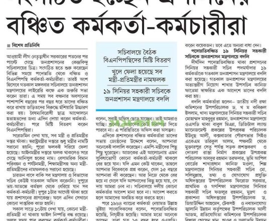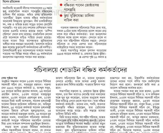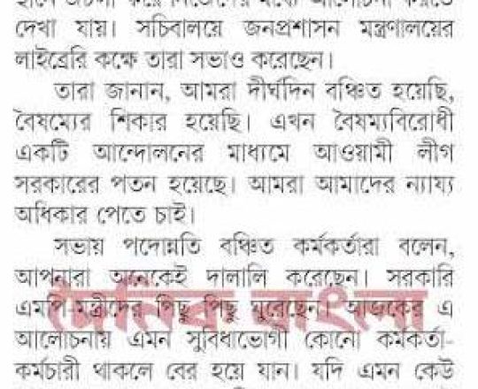 সময়ের আলো, ৭ আগস্ট ২০২৪, সচিবালয়ে কোনো কর্মকর্তার আদেশ না মানার ঘোষণা বঞ্চিত কর্মকর্তাদের