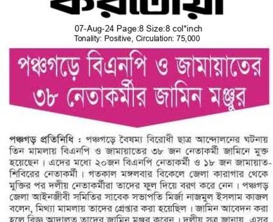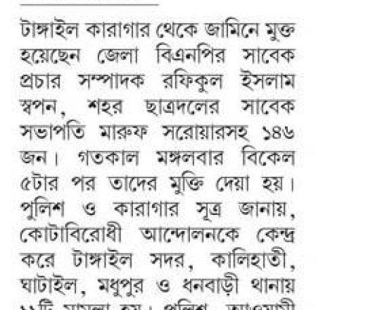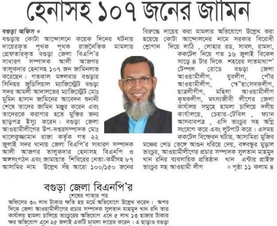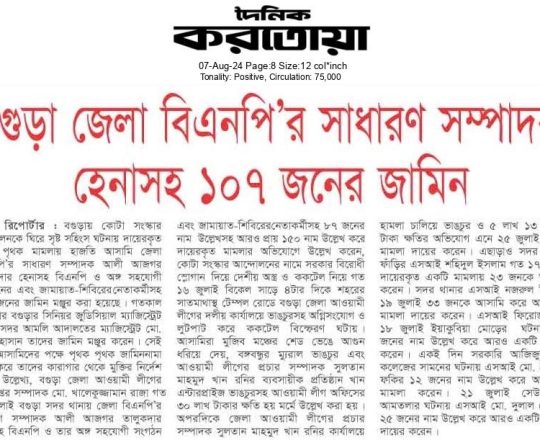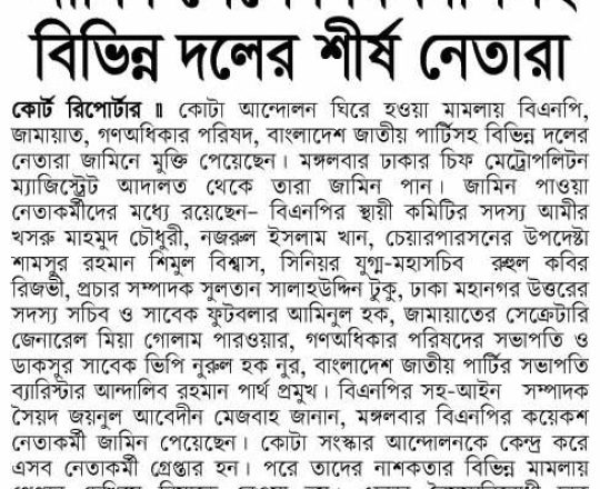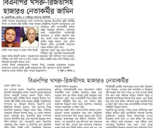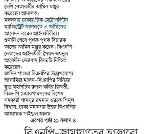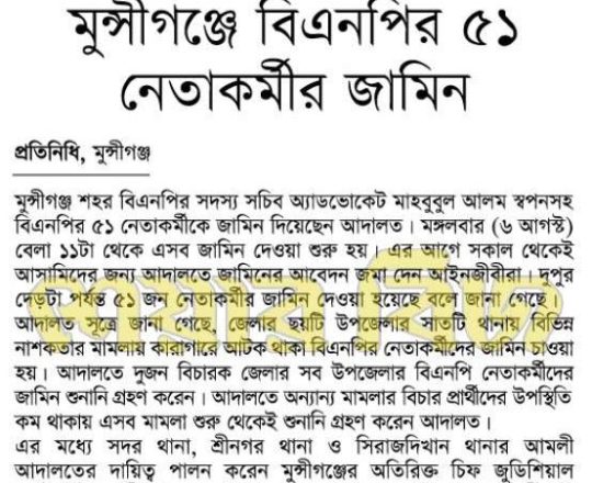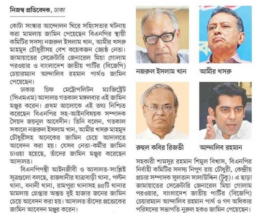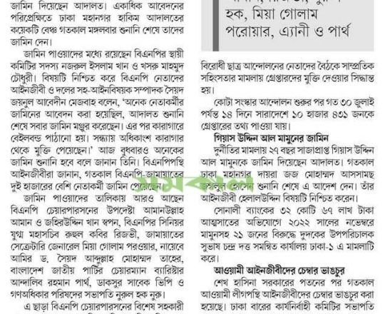 সময়ের আলো, ৭ আগস্ট ২০২৪, বিএনপি-জামায়াতের হাজারো নেতাকর্মীর জামিন