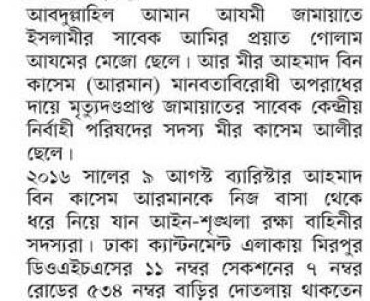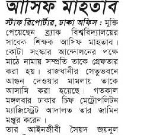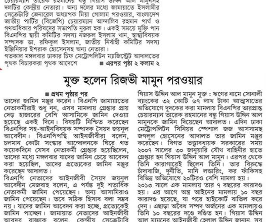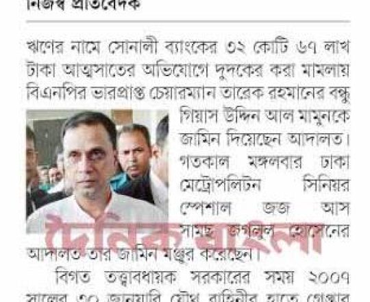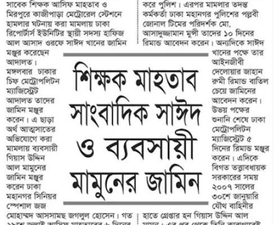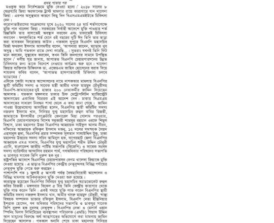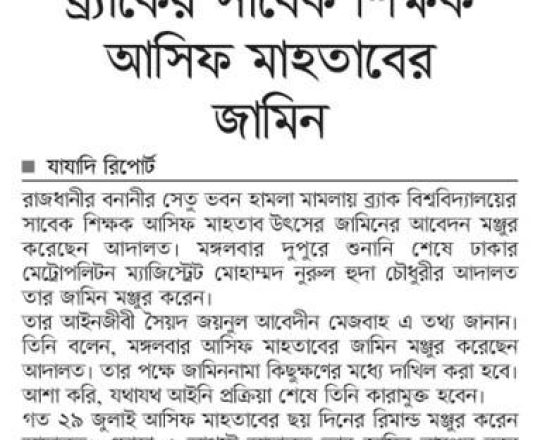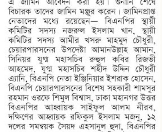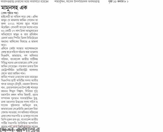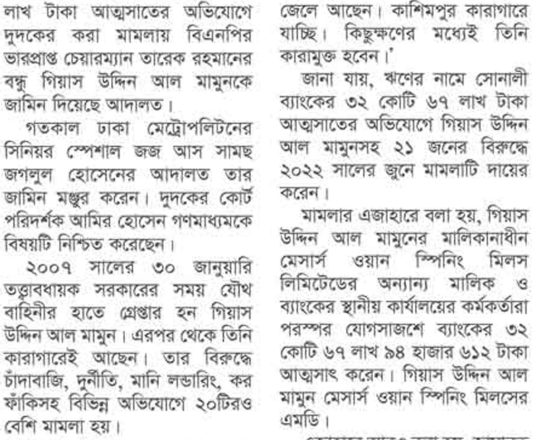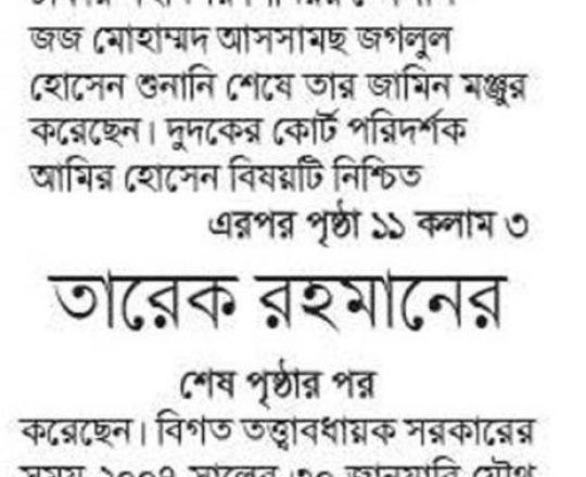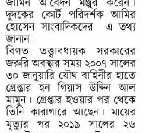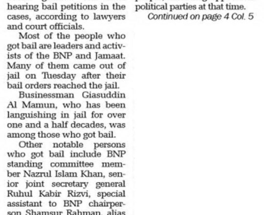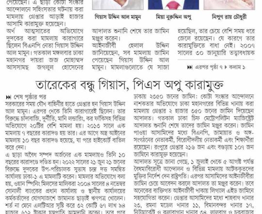 সময়ের আলো, ৭ আগস্ট ২০২৪, তারেক রহমানের বন্ধু মামুনের জামিন