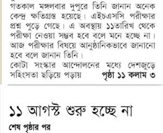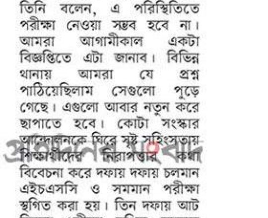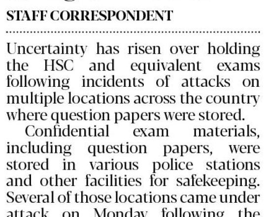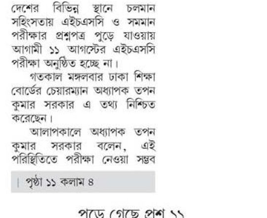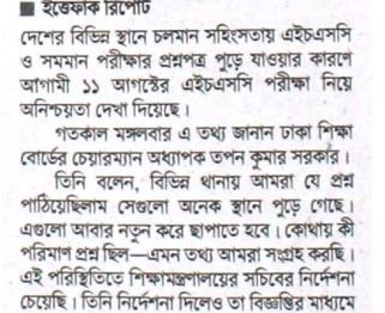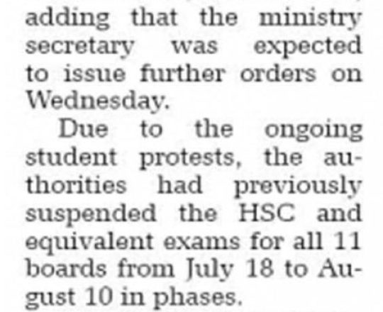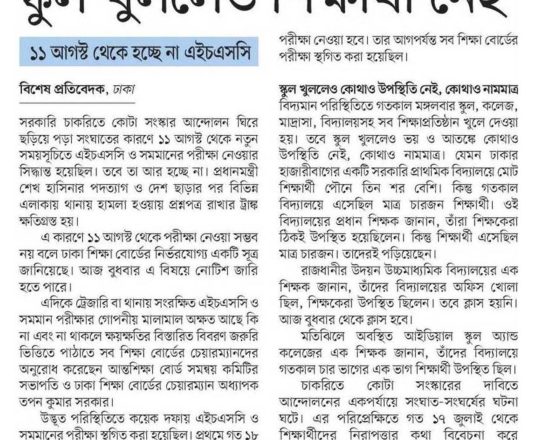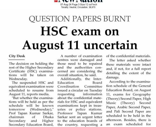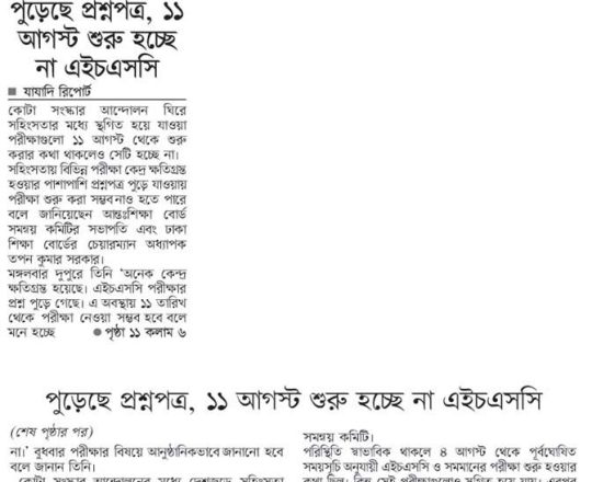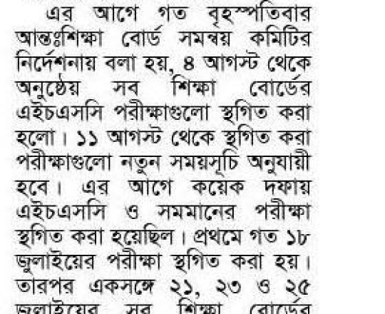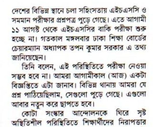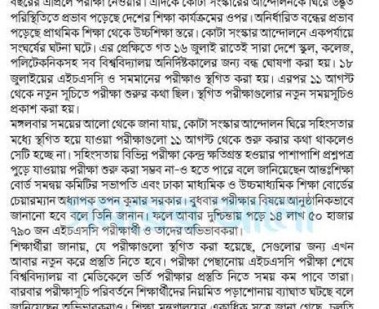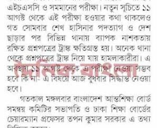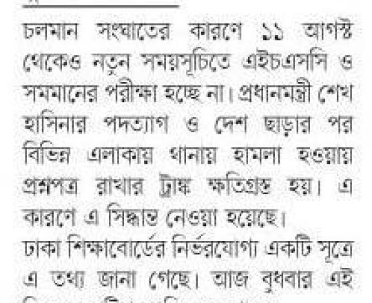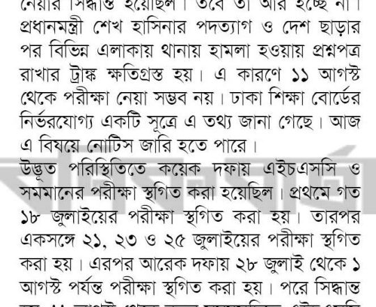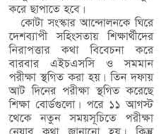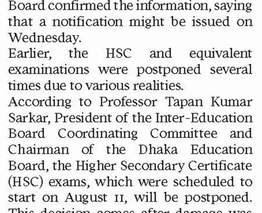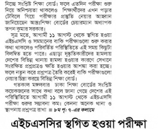 সময়ের আলো, ৭ আগস্ট ২০২৪, এইচএসসি পরীক্ষা ১১ আগস্ট শুরু হচ্ছে না