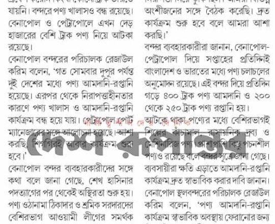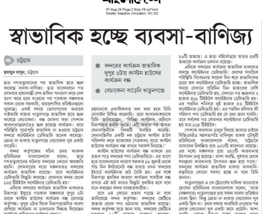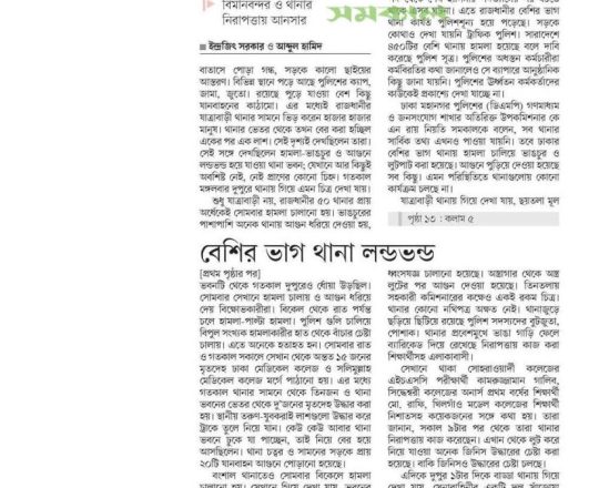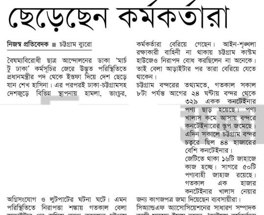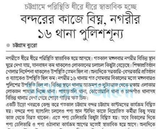 সময়ের আলো, ৭ আগস্ট ২০২৪, বন্দরের কাজে বিঘ্ন, নগরীর ১৬ থানা পুলিশশূন্য