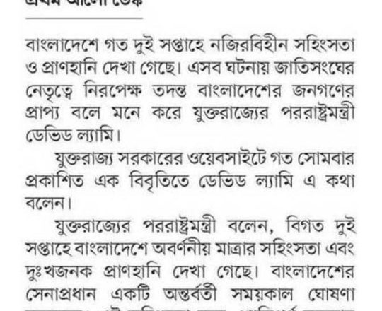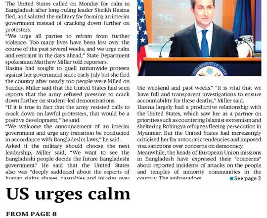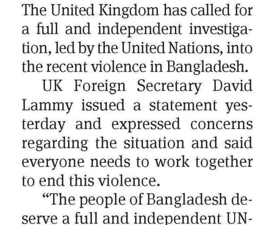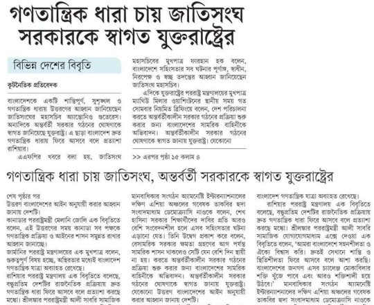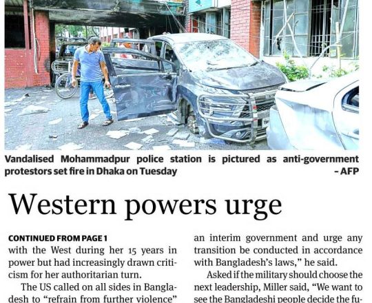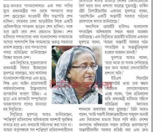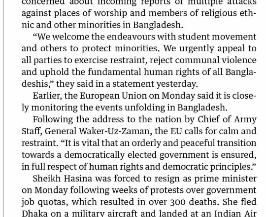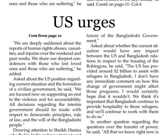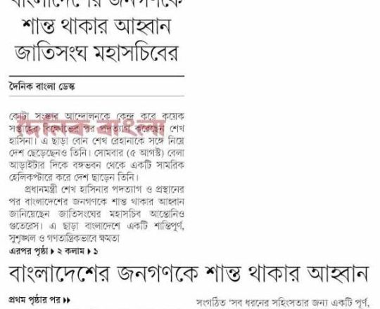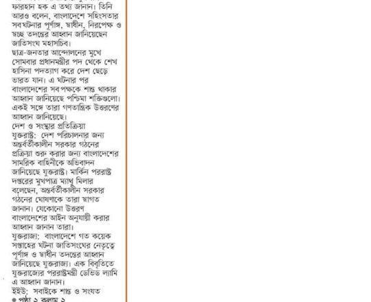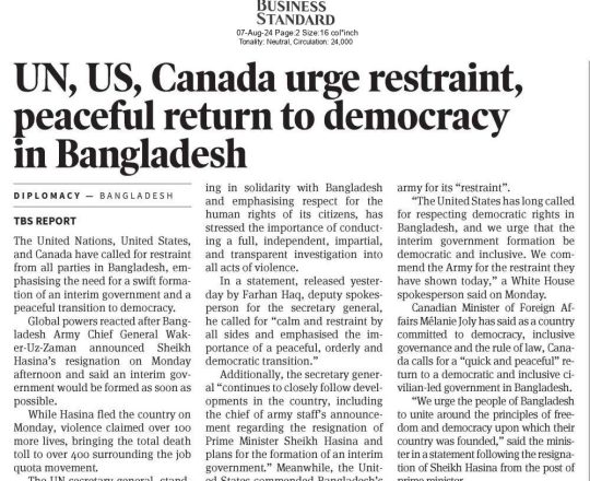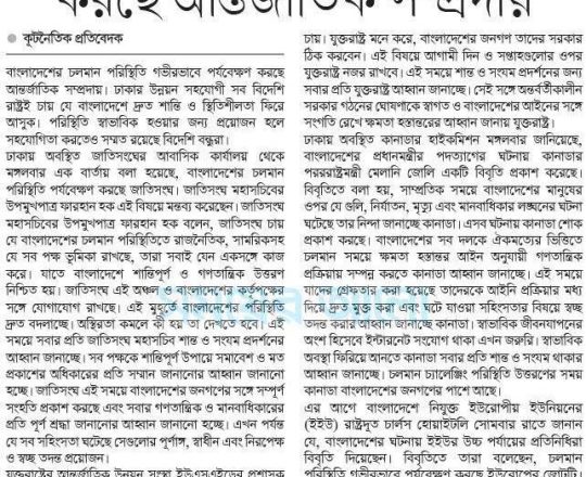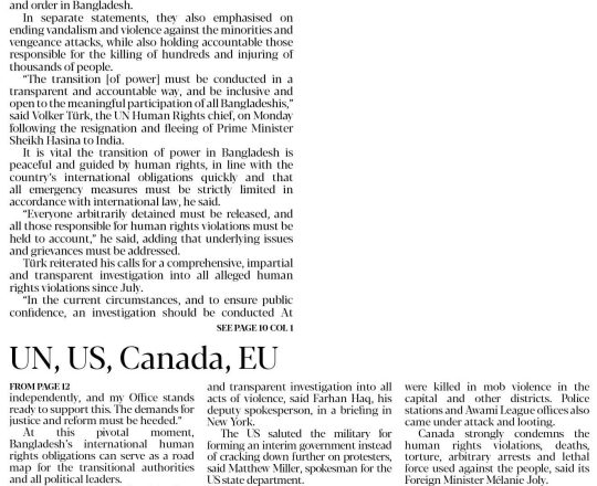 Bangladesh Post, 7 August 2024, UN, EU, US, canada call for restraints
