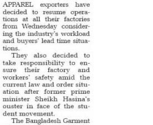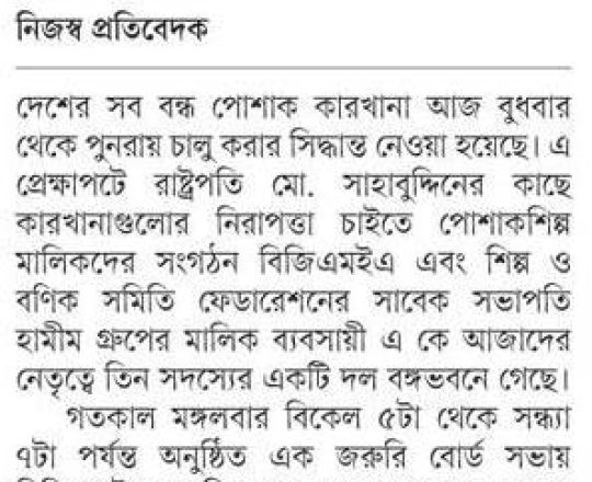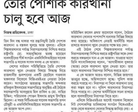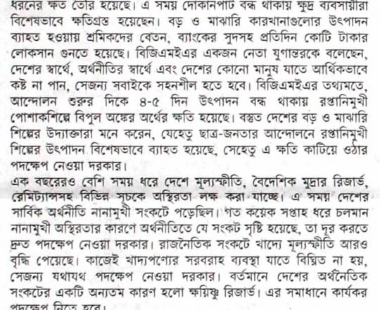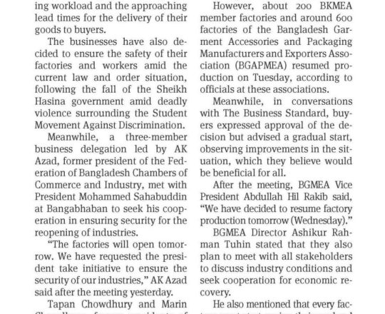 সময়ের আলো, ৭ আগস্ট ২০২৪, সব শিল্প-কারখানা খুলছে আজ