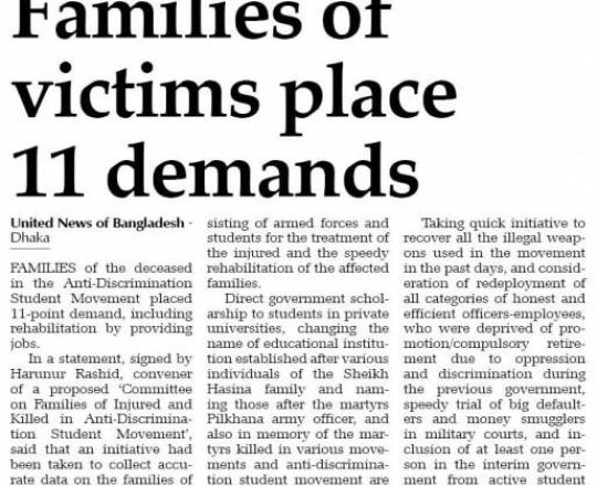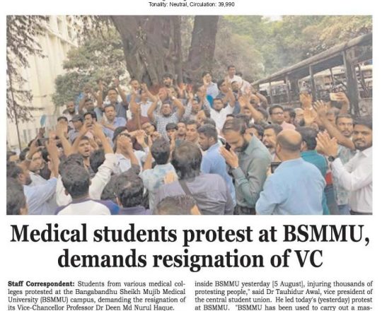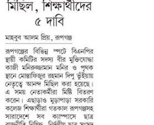 বাংলাদেশ প্রতিদিন, ৭ আগস্ট ২০২৪, বিভিন্ন দাবিতে মিছিল-সমাবেশ