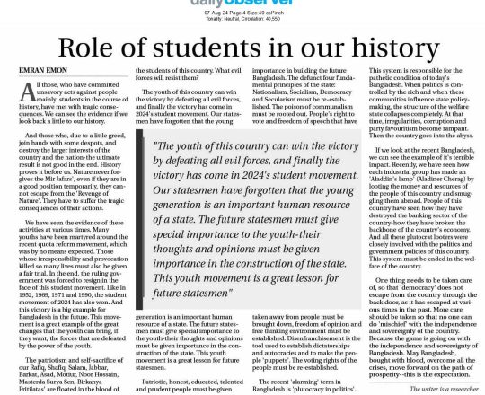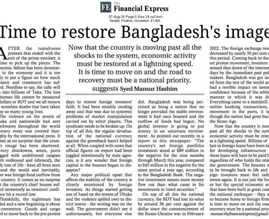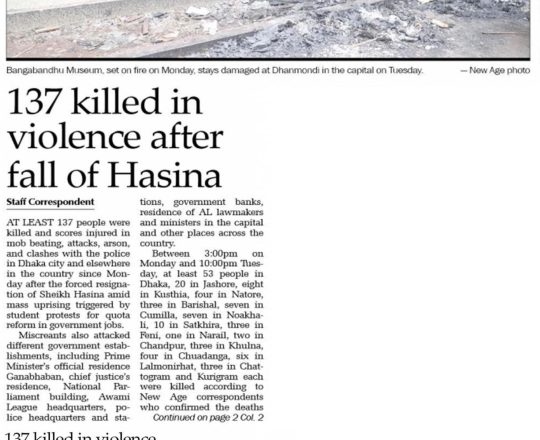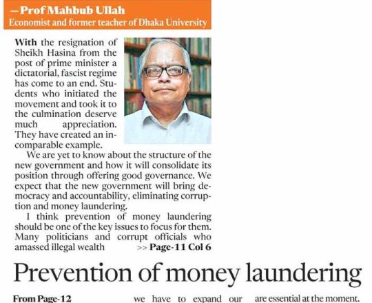 Asian Age, 7 August 2024, The trail of corruption left behind by Sheikh Hasina should be obliterated