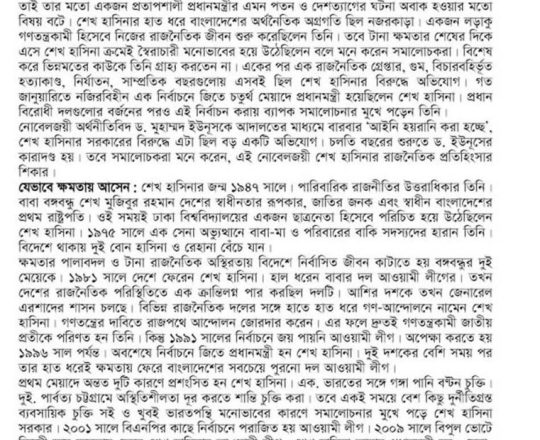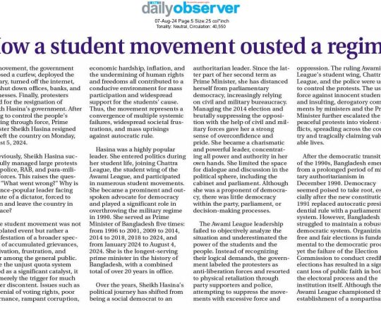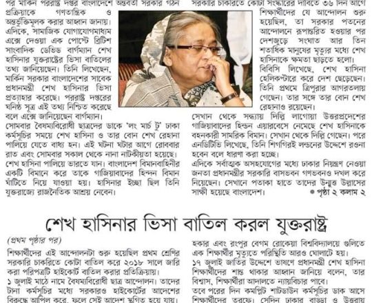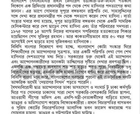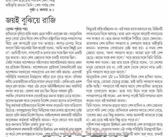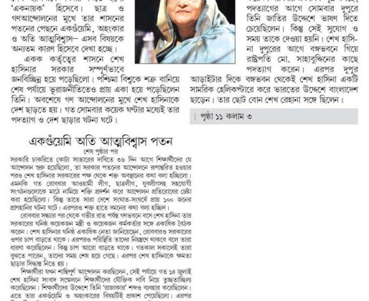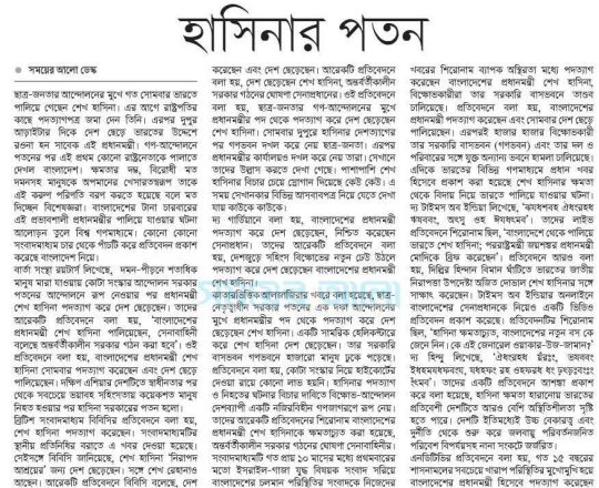 বাংলাদেশ প্রতিদিন, ৭ আগস্ট ২০২৪, কেন এভাবে বিদায় নিতে হলো শেখ হাসিনাকে?