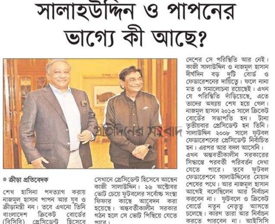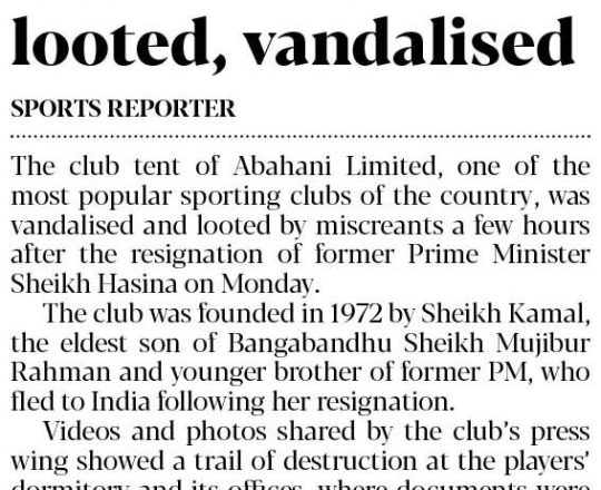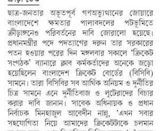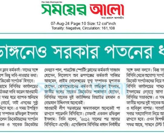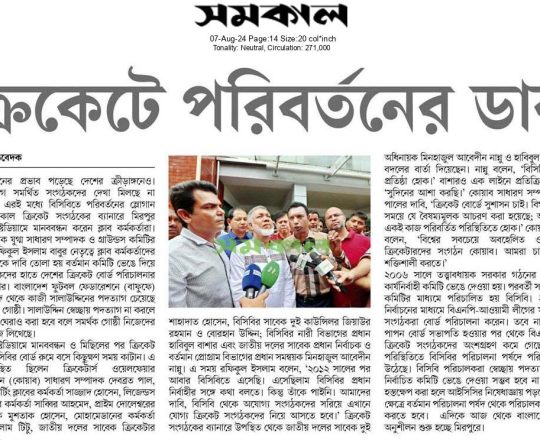 সময়ের আলো, ৭ আগস্ট ২০২৪, ক্রীড়াঙ্গনেও সরকার পতনের ধাক্কা