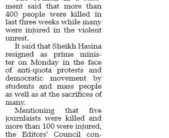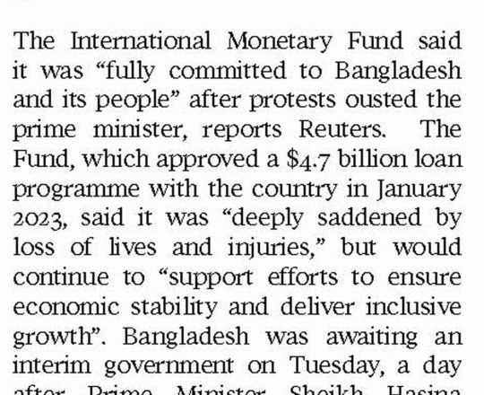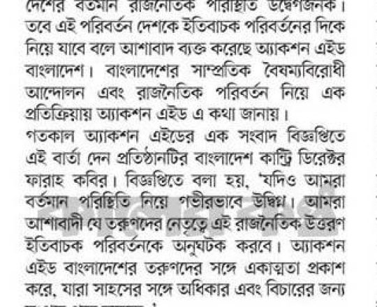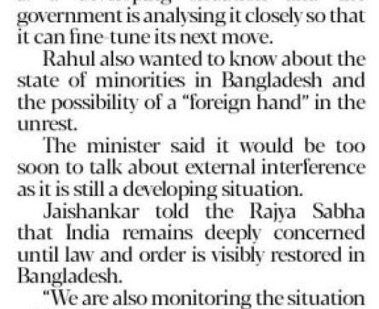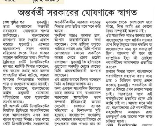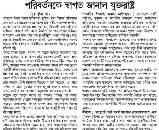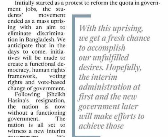 Asian Age, 7 August 2024, 'We are hopeful transition will lead to positive change'