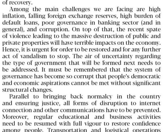 সময়ের আলো, ৭ আগস্ট ২০২৪, যত দ্রুত সম্ভব স্বস্তি ফেরানো জরুরি