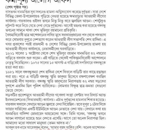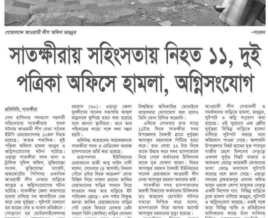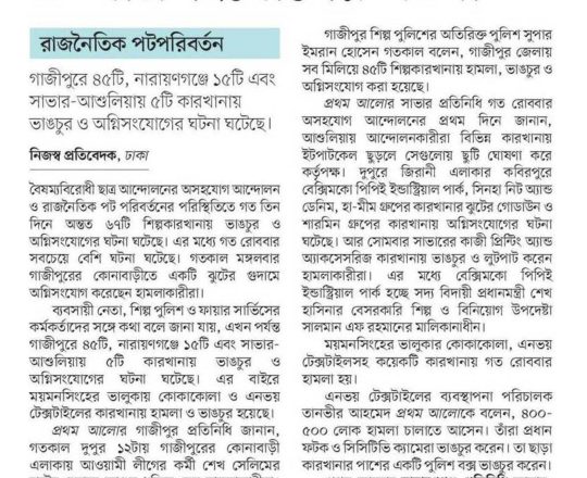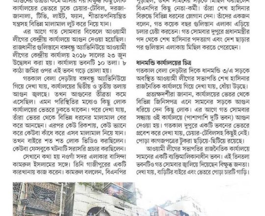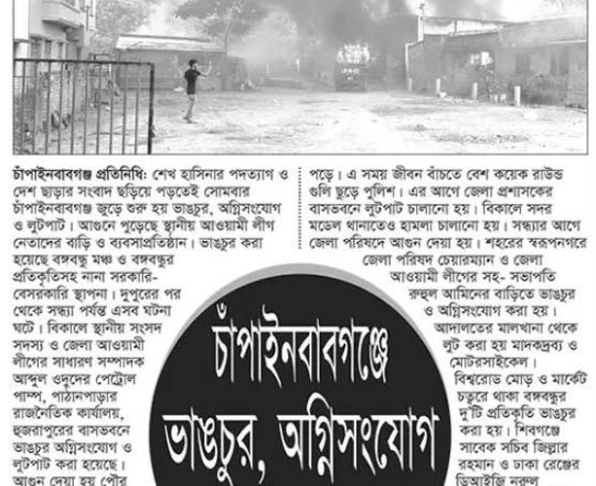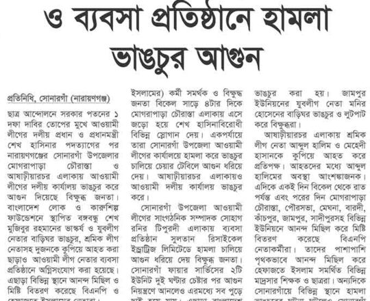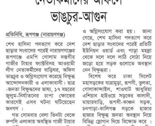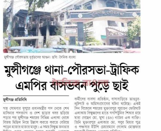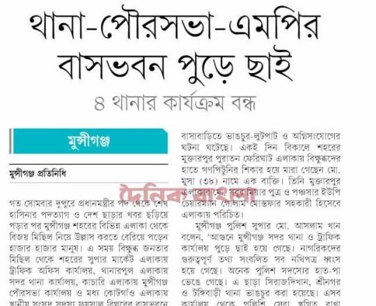 ভোরের ডাক, ৭ আগস্ট ২০২৪, সরকার পতনের পর মুন্সীগঞ্জে হামলা ভাঙচুর লুটপাট ও অগ্নিসংযোগ