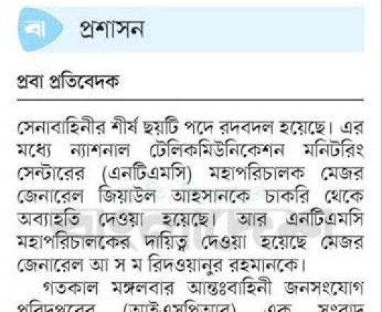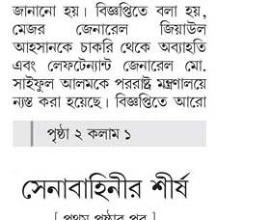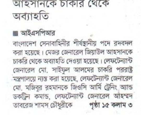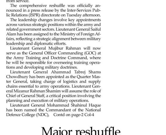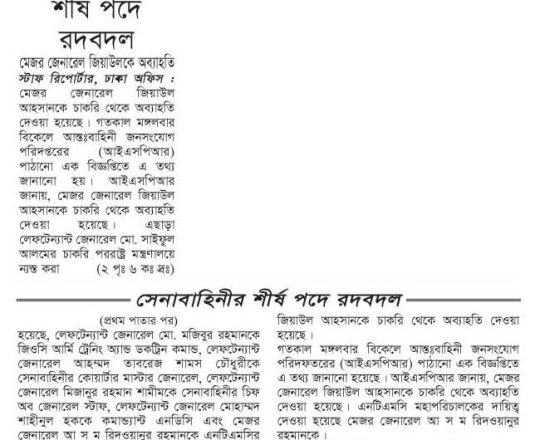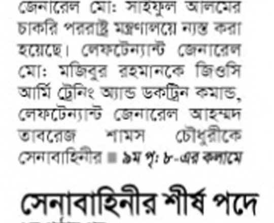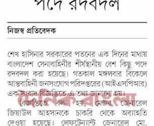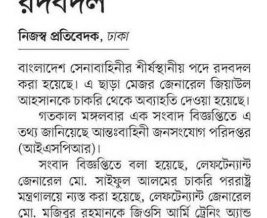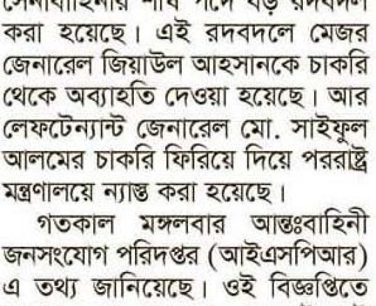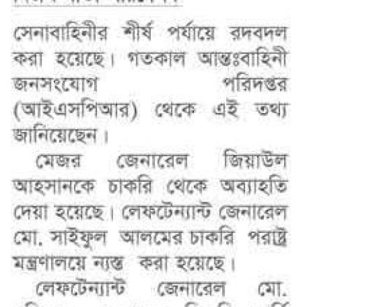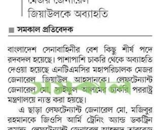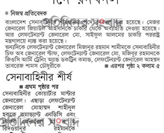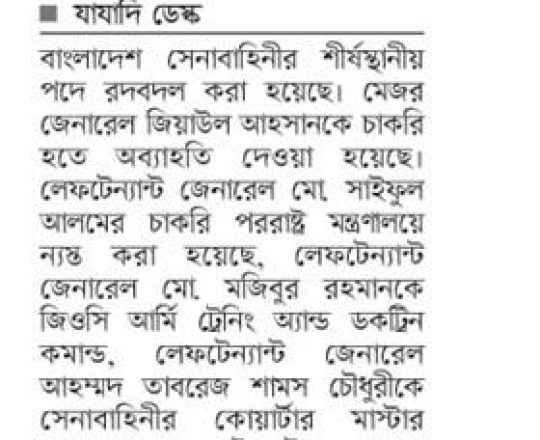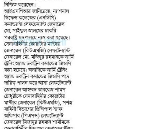 সময়ের আলো, ৭ আগস্ট ২০২৪, সেনাবাহিনীর শীর্ষ পদে রদবদল