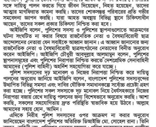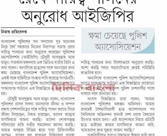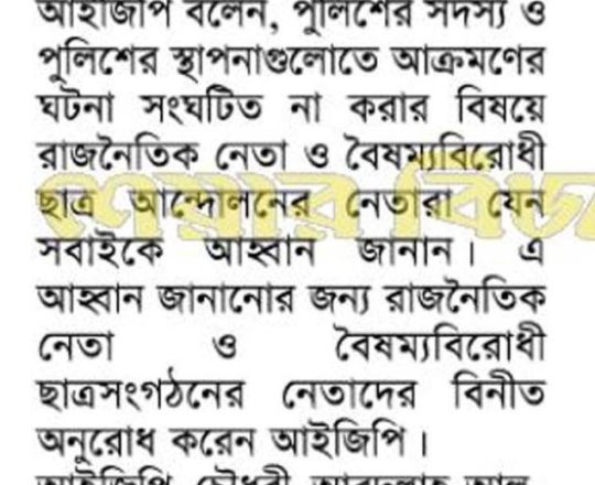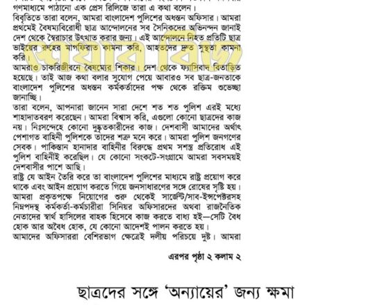 শেয়ার বিজ, ৭ আগস্ট ২০২৪, ছাত্রদের সঙ্গে 'অন্যায়ের' জন্য ক্ষমা চেয়েছে পুলিশ