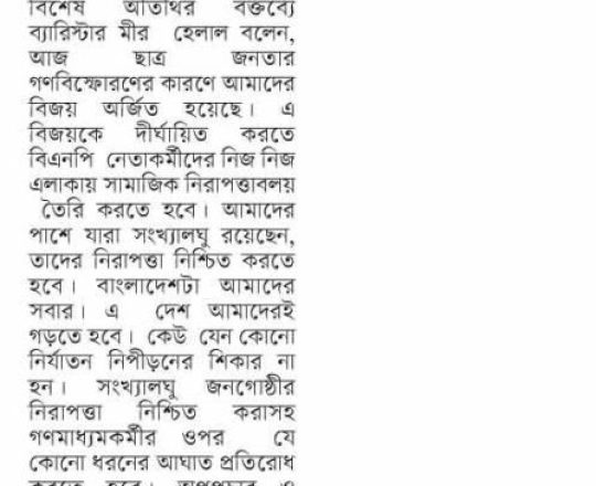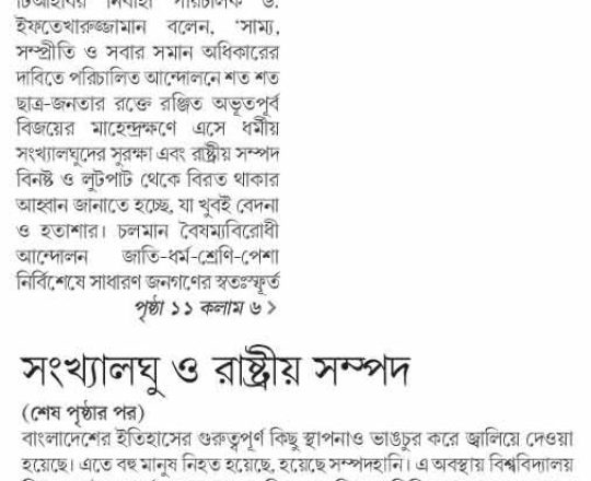 সময়ের আলো, ৭ আগস্ট ২০২৪, দেশে কেউ সংখ্যালঘু নয় এবং কেউ সংখ্যাগুরু নয়