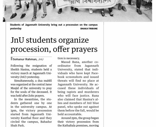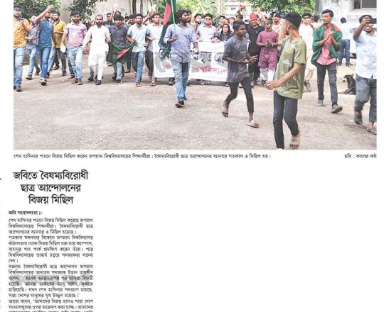 সময়ের আলো, ৭ আগস্ট ২০২৪, শেখ হাসিনার পদত্যাগ জবিতে বৈষম্যবিরোধী ছাত্র আন্দোলনের বিজয় মিছিল