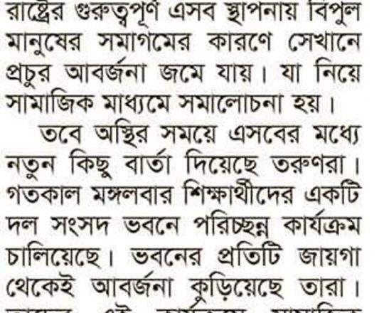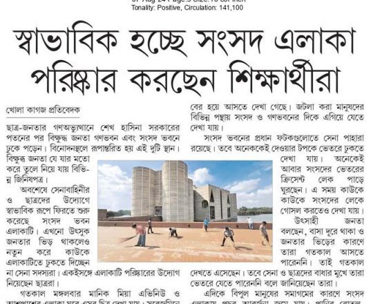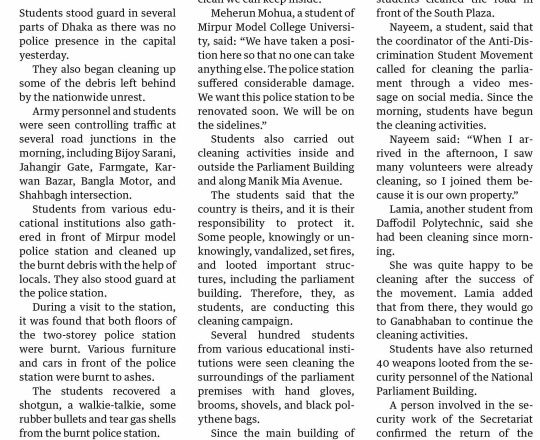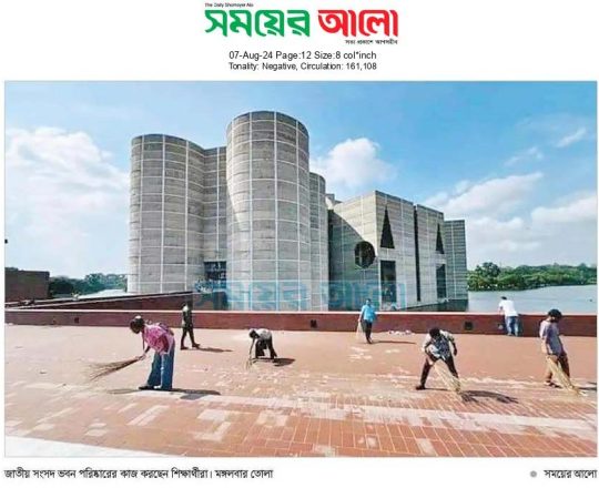সময়ের আলো, ৭ আগস্ট ২০২৪, জাতীয় সংসদ ভবন পরিষ্কারের কাজ করছেন শিক্ষার্থীরা