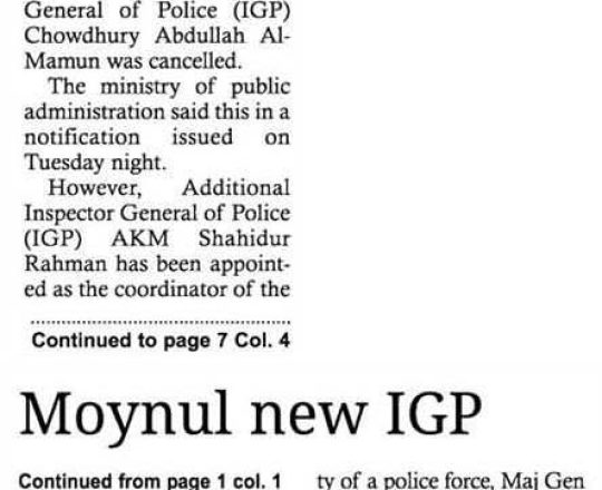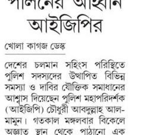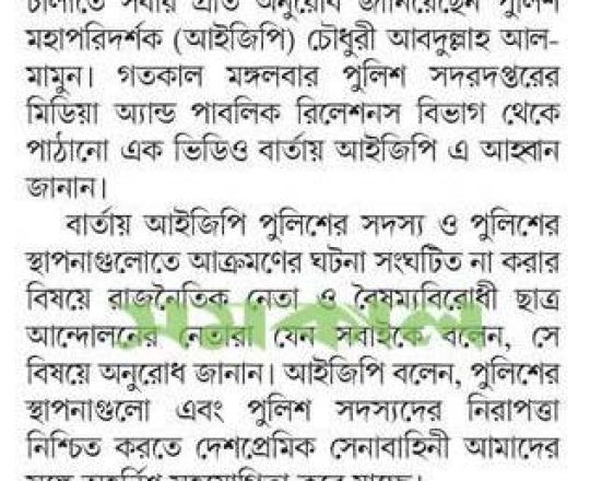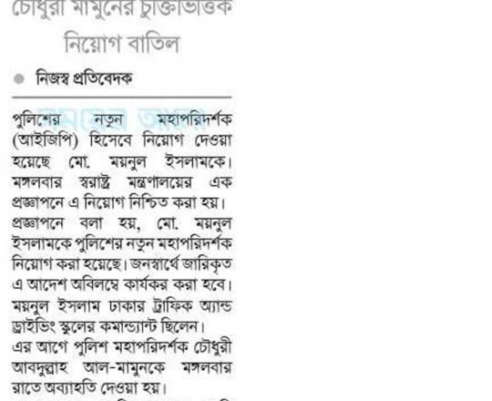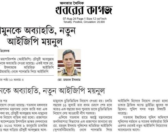 সময়ের আলো, ৭ আগস্ট ২০২৪, নতুন আইজিপি ময়নুল ইসলাম