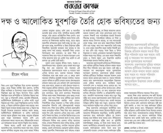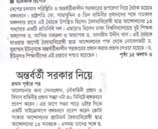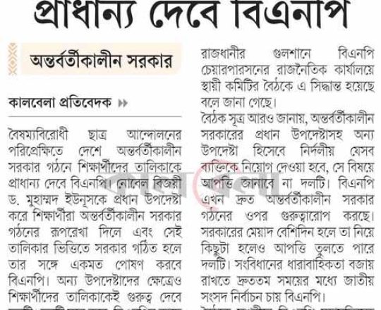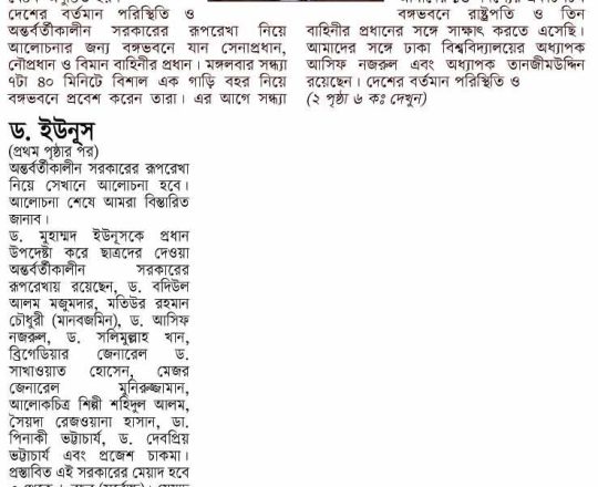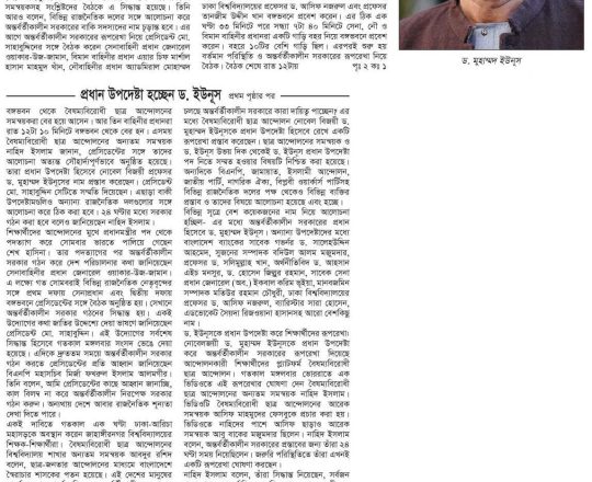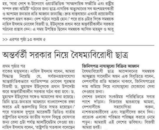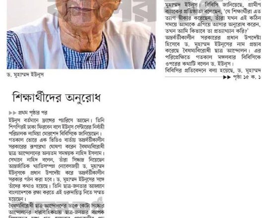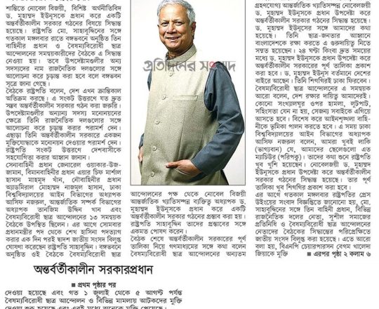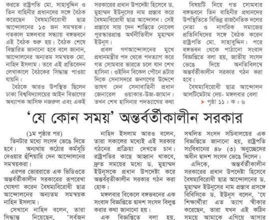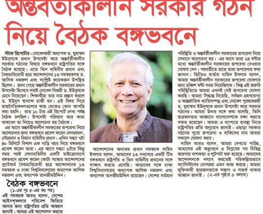 বাংলাদেশ প্রতিদিন, ৭ আগস্ট ২০২৪, অন্তর্বর্তী সরকারের প্রধান ড. ইউনূস