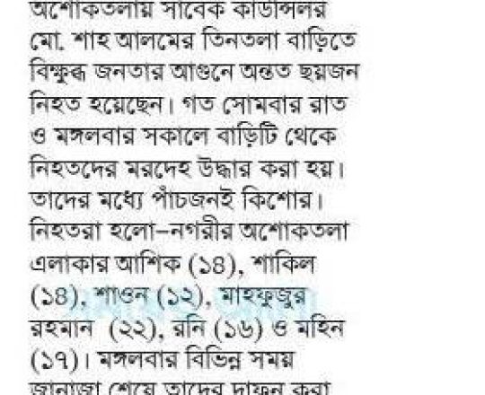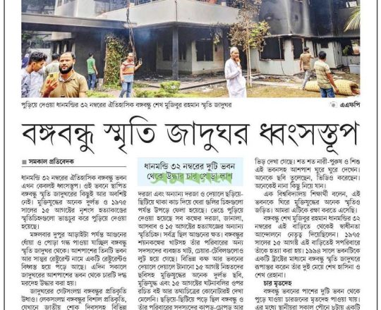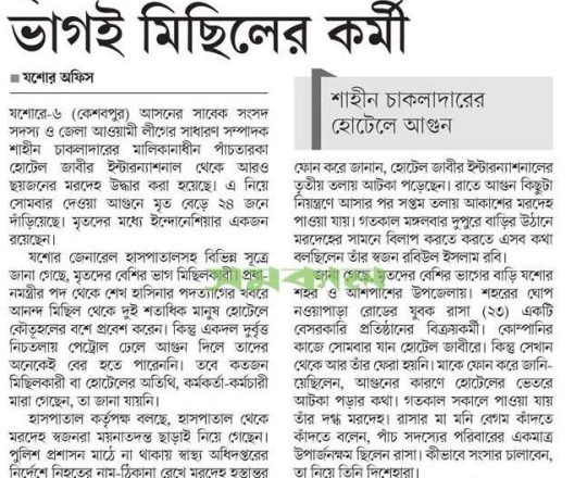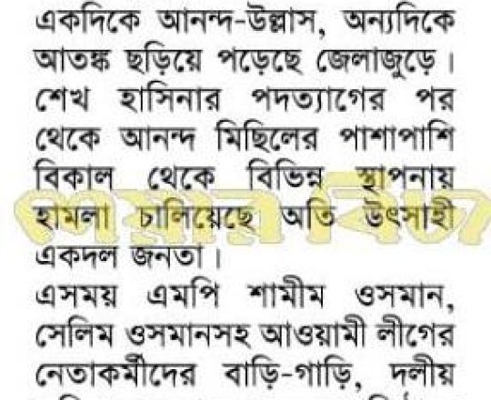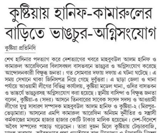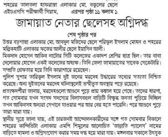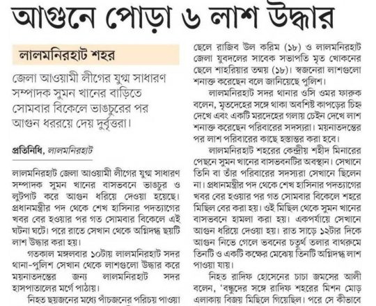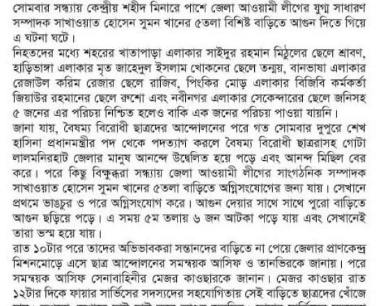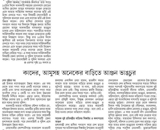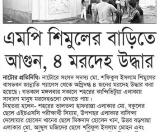 সময়ের আলো, ৭ আগস্ট ২০২৪, এমপি শিমুলের বাড়িতে অগ্নিসংযোগ জামায়াত নেতার ছেলেসহ অগ্নিদগ্ধ ৪ মরদেহ উদ্ধার