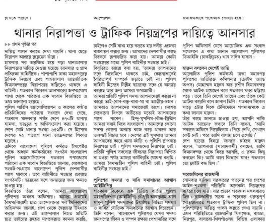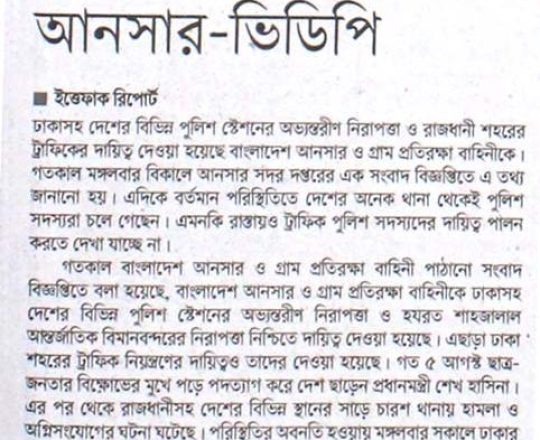 শেয়ার বিজ, ৭ আগস্ট ২০২৪, থানার নিরাপত্তা ও ঢাকার ট্রাফিক নিয়ন্ত্রণের দায়িত্ব পেল আনসার