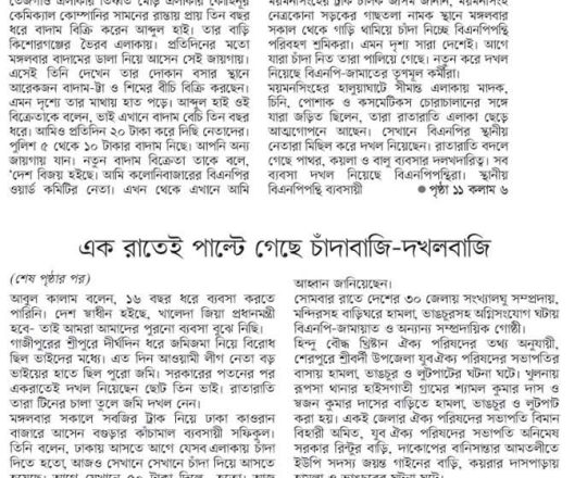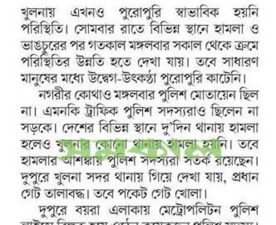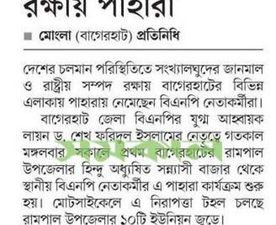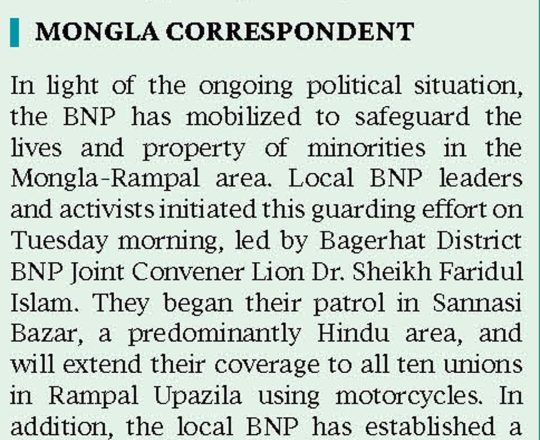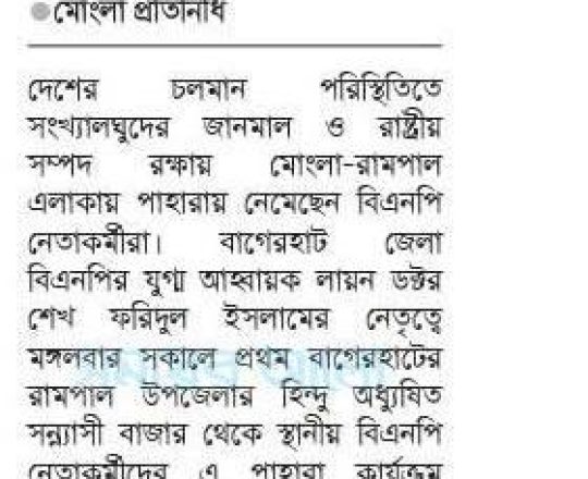 সময়ের আলো, ৭ আগস্ট ২০২৪, মোংলায় সংখ্যালঘুদের পাহারায় বিএনপি নেতাকর্মীরা