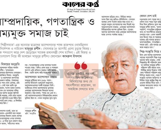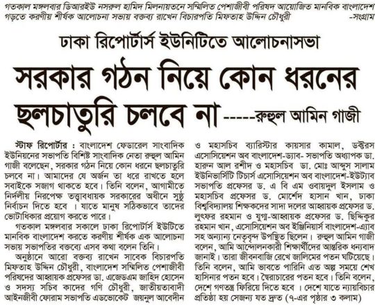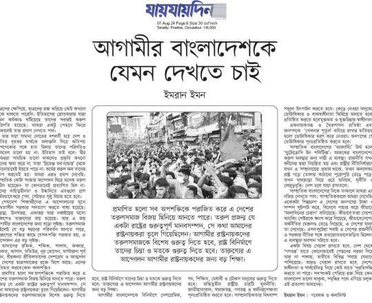বাংলাদেশ প্রতিদিন, ৭ আগস্ট ২০২৪, রাষ্ট্র মেরামতের দ্বার উন্মোচিত- বদিউল আলম মজুমদার