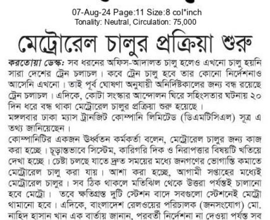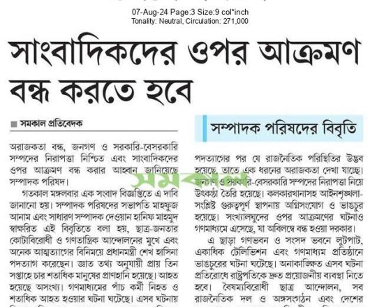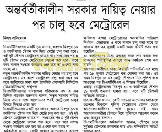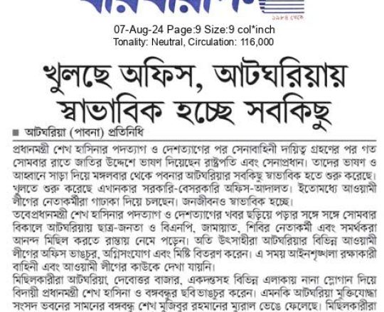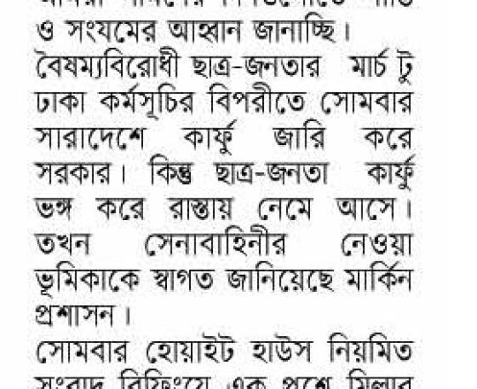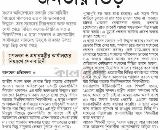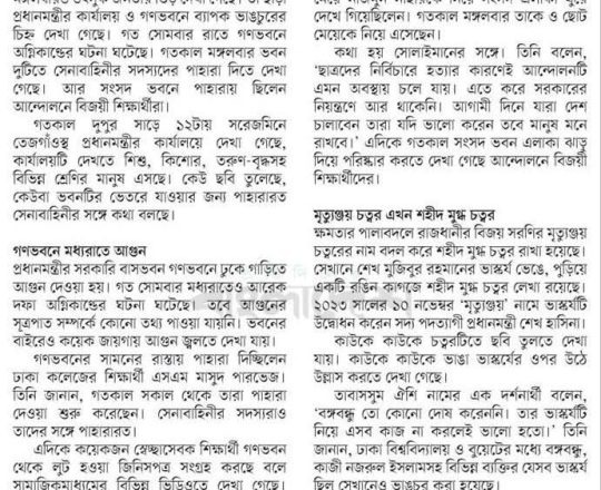 সময়ের আলো, ৭ আগস্ট ২০২৪, মঙ্গলবারের রাজধানী