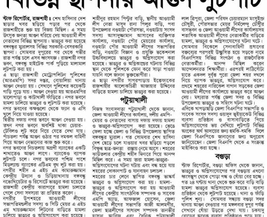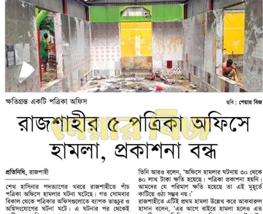 শেয়ার বিজ, ৭ আগস্ট ২০২৪, রাজশাহীর ৫ পত্রিকা অফিসে হামলা, প্রকাশনা বন্ধ