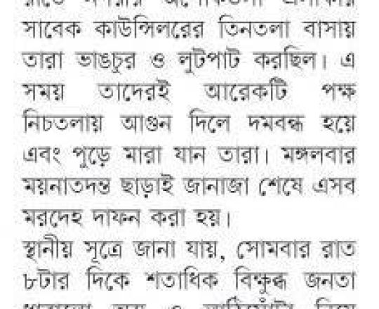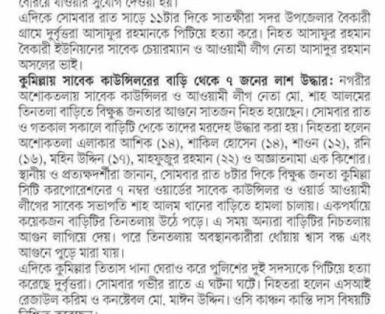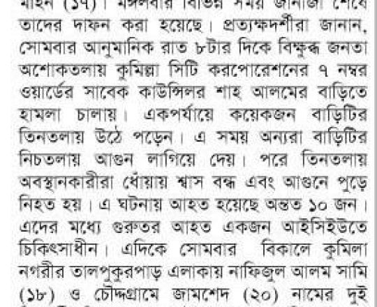 সময়ের আলো, ৭ আগস্ট ২০২৪, কুমিল্লায় কাউন্সিলরের বাড়িতে আগুন দিয়ে ছয়জনকে হত্যা