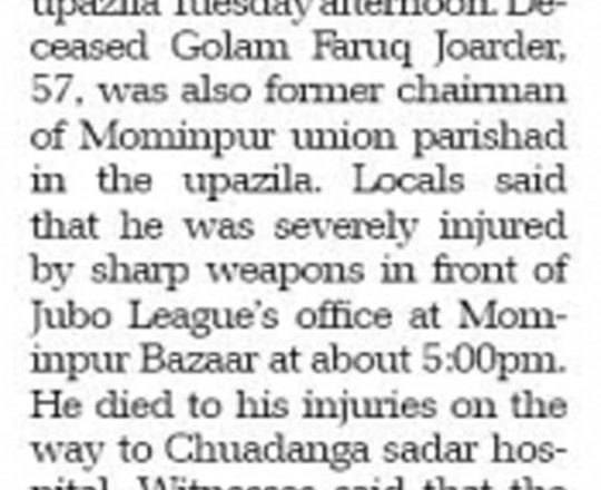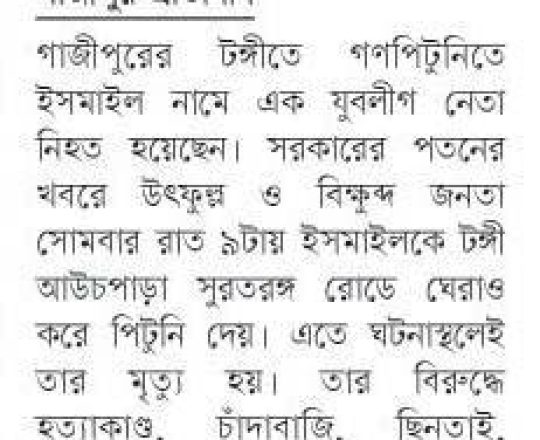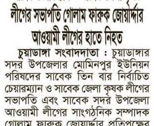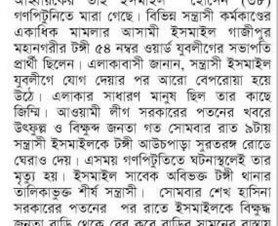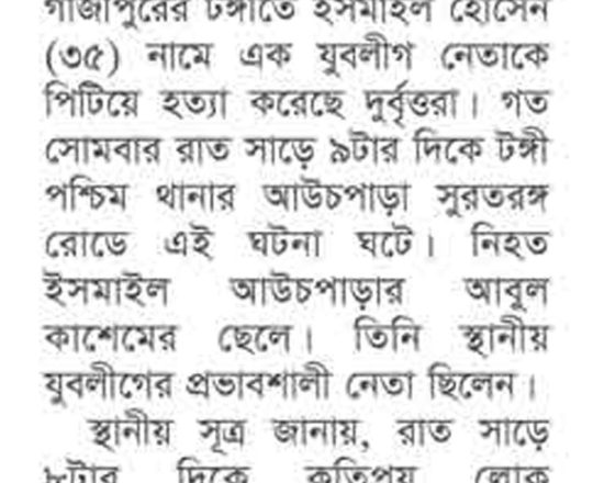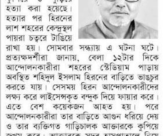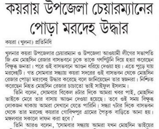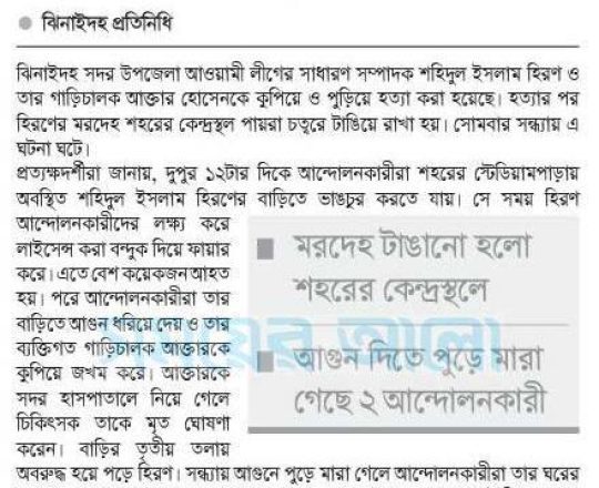 সময়ের আলো, ৭ আগস্ট ২০২৪, কুপিয়ে-পুড়িয়ে আওয়ামী লীগ নেতা ও গাড়িচালক হত্যা