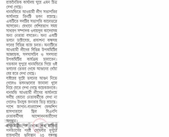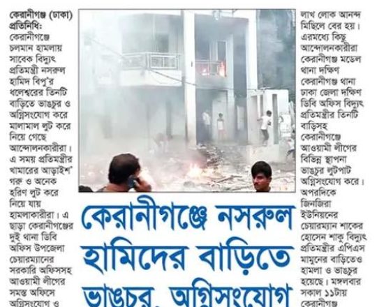 বাংলাদেশ প্রতিদিন, ৭ আগস্ট ২০২৪, জ্বলছে মন্ত্রী এমপির বাড়ি