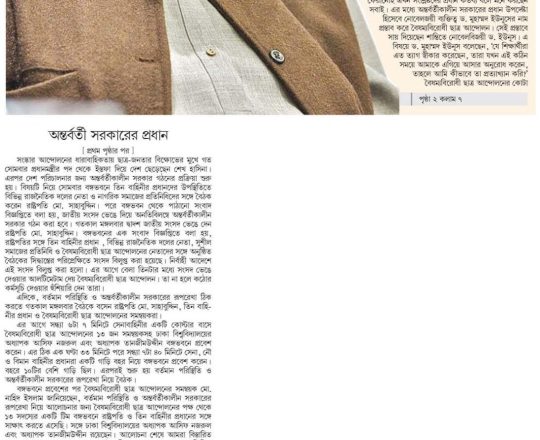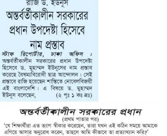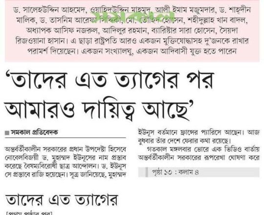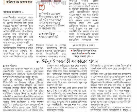 সময়ের আলো, ৭ আগস্ট ২০২৪, অন্তর্বর্তীকালীন সরকারের প্রধান ড. ইউনূস