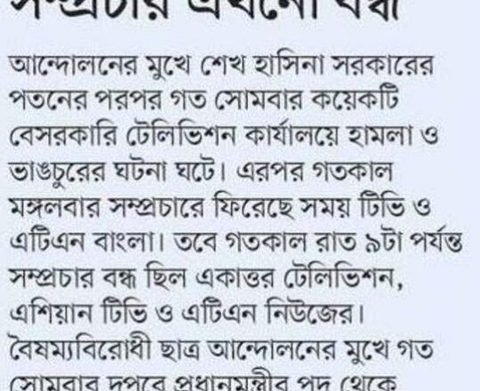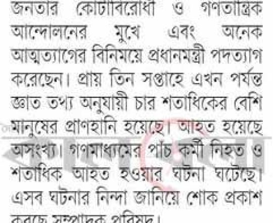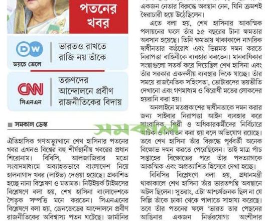 সময়ের আলো, ৭ আগস্ট ২০২৪, ছাত্র-জনতার গণ-আন্দোলনে হাসিনার পতন