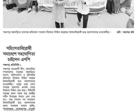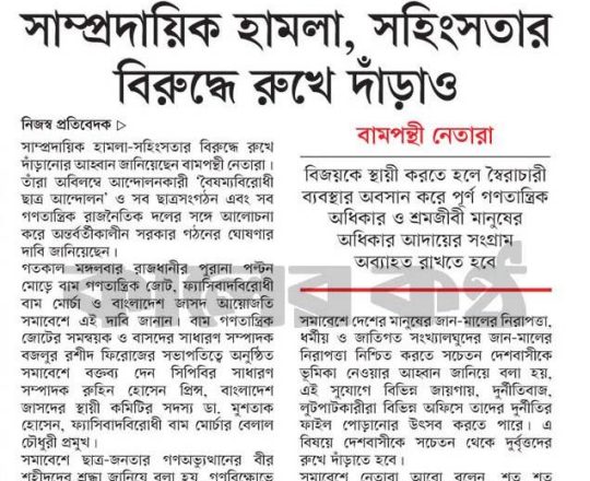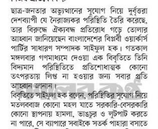 সময়ের আলো, ৭ আগস্ট ২০২৪, দেশে চলমান লুটপাট, অগ্নিকাণ্ড, ভাঙচুর ও সাম্প্রদায়িক হামলা বন্ধের দাবিতে