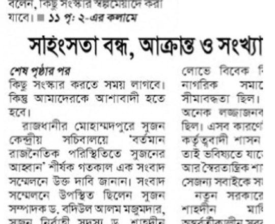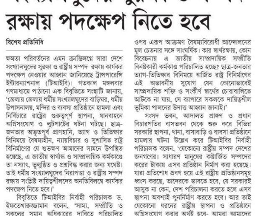 ভোরের ডাক, ৭ আগস্ট ২০২৪, সংখ্যালঘুদের সুরক্ষা ও রাষ্ট্রীয় সম্পদ রক্ষায় কার্যকর পদক্ষেপের আহ্বান টিআইবির