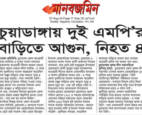 Bangladesh Today, 7 August 2024, Jubo League's leader's house torched in Chuadanga; 4 charred to death