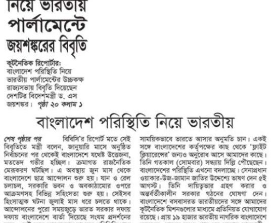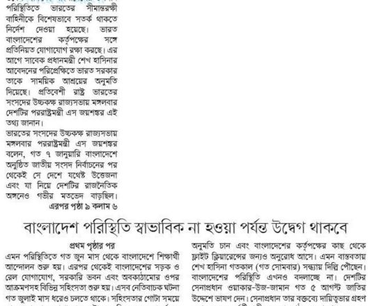 সময়ের আলো, ৭ আগস্ট ২০২৪, বাংলাদেশ পরিস্থিতি স্বাভাবিক না হওয়া পর্যন্ত উদ্বেগ থাকবে