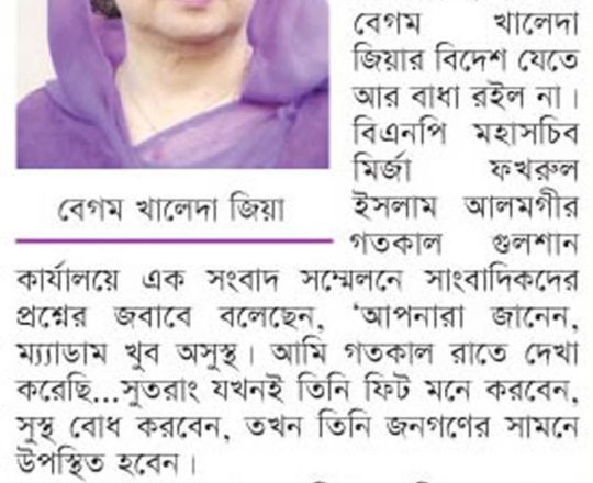 সময়ের আলো, ৭ আগস্ট ২০২৪, এভারকেয়ার হাসপাতালে গতকাল বিএনপি চেয়ারপারসন খালেদা জিয়াকে দেখতে যান মির্জা ফখরুল ইসলাম আলমগীর
