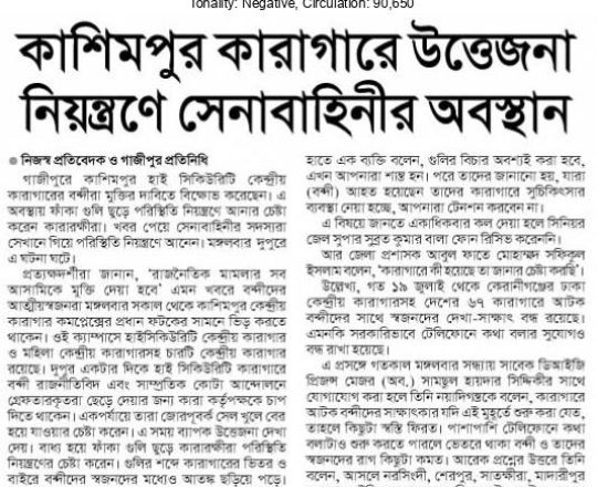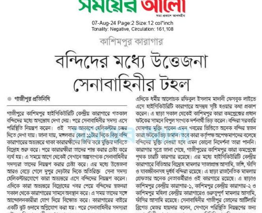 সময়ের আলো, ৭ আগস্ট ২০২৪, বন্দিদের মধ্যে উত্তেজনা সেনাবাহিনীর টহল