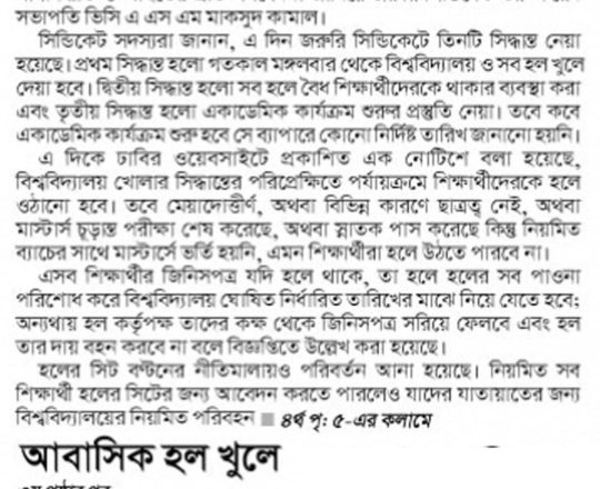 সময়ের আলো, ৭ আগস্ট ২০২৪, বিশ্ববিদ্যালয়ে ছাত্রলীগের দখলে থাকা সবকিছুর নিয়ন্ত্রণ নিয়েছে ছাত্ররা