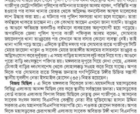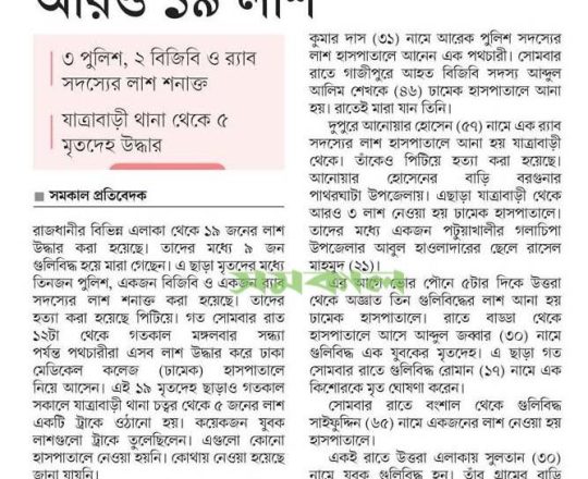 ভোরের ডাক, ৭ আগস্ট ২০২৪, ঢাকায় চার পুলিশ, র্যাব, বিজিবি সদস্যসহ আরও ২১ লাশ