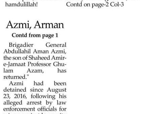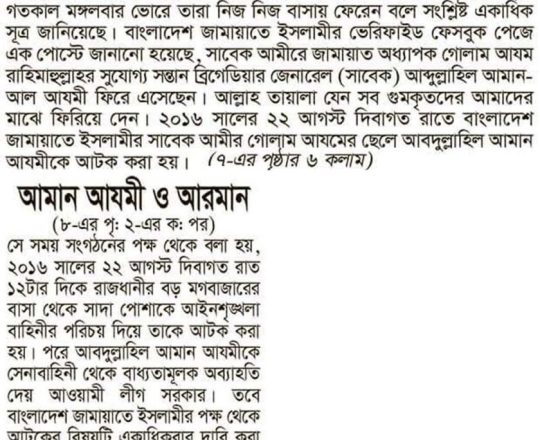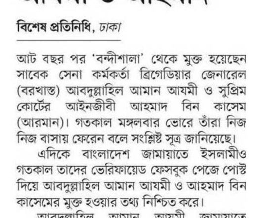 সময়ের আলো, ৭ আগস্ট ২০২৪, বন্দিশালা থেকে মুক্ত আমান আযমী ও আরমান