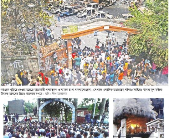 সময়ের আলো, ৭ আগস্ট ২০২৪, সোমবার রাজধানীর যাত্রাবাড়ী থানা পুড়িয়ে দেয় দুর্বৃত্তরা
