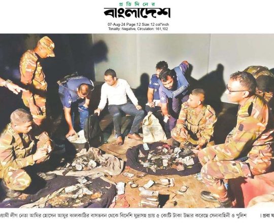 Bangladesh Today, 7 August 2024, Tk5 crore found at AL leader Amu's house in Barishal