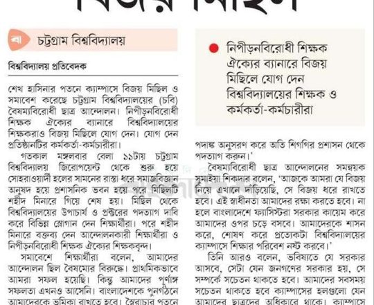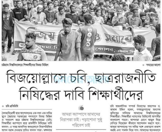 সময়ের আলো, ৭ আগস্ট ২০২৪, বিজয়োল্লাসে চবি, ছাত্ররাজনীতি নিষিদ্ধের দাবি শিক্ষার্থীদের