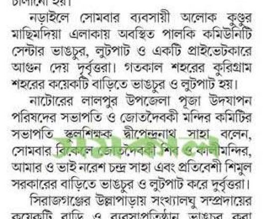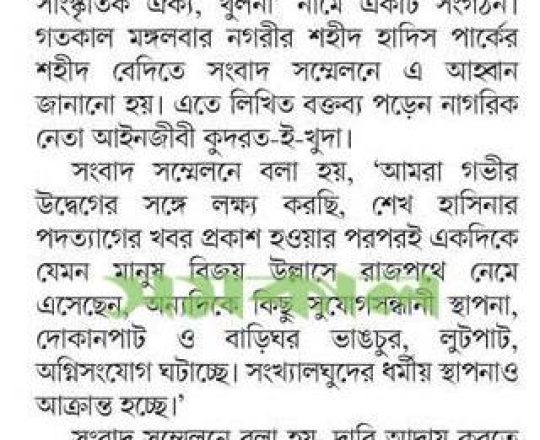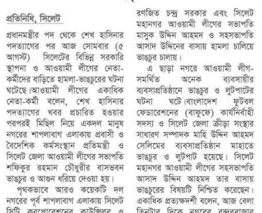 সময়ের আলো, ৭ আগস্ট ২০২৪, লুটপাট, ভাঙচুর, সাম্প্রদায়িক হামলা বন্ধের দাবি