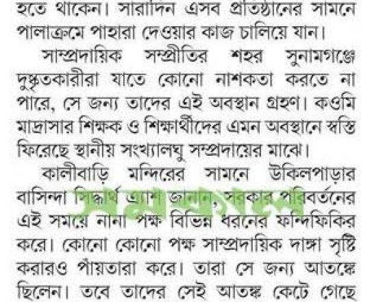 সময়ের আলো, ৭ আগস্ট ২০২৪, হাটহাজারীতে গতকাল মন্দির পাহারা দেন মসল্লিরা