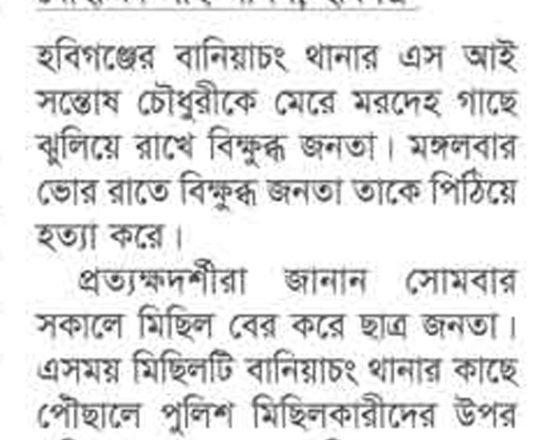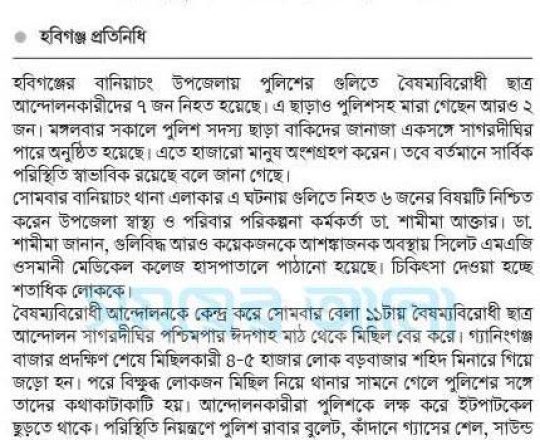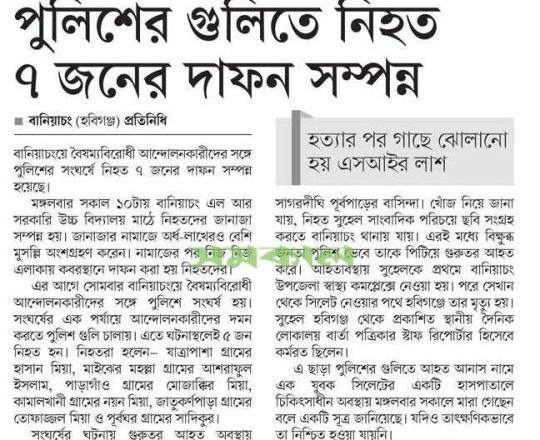 সময়ের আলো, ৭ আগস্ট ২০২৪, হবিগঞ্জে সোমবারের সহিংসতায় নিহত ৯